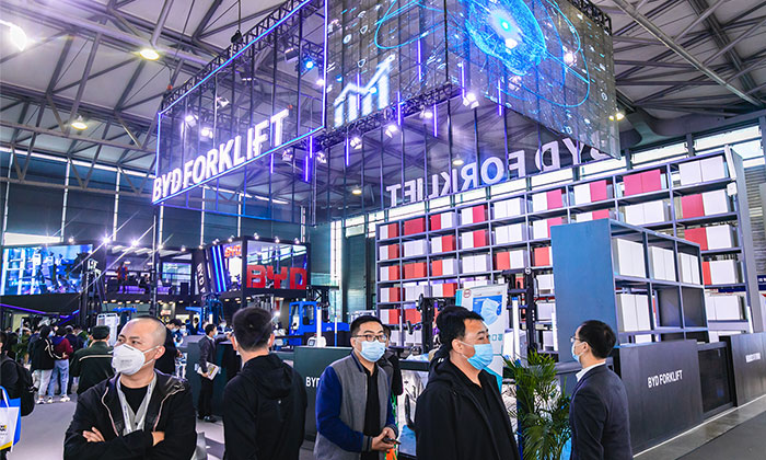 项目名称:2023第23届亚洲国际物流(CeMAT ASIA)运输系统展览会 举办地点:上海新国际展览中心 合作企业:比亚迪叉车 面积:640㎡展位搭建