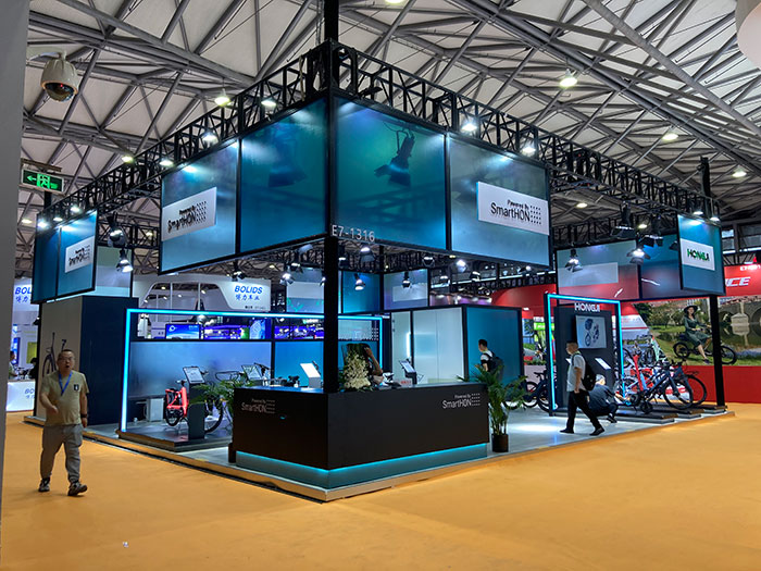 项目名称:2023上海国际自行车展 举办地点:上海新国际展览中心 合作企业:博力车业 面积:144㎡展台搭建方案