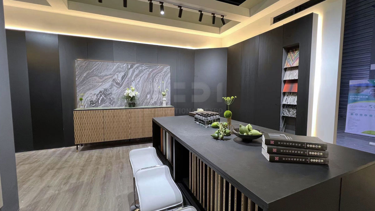 本次 怡黄展台占地面积为72㎡,展位位于新国际中心(N5-T19),以特色的展台风格及产品获得国内外众多观众的喜爱,展位现场人潮涌动,欢声持续不断。正如上海家具展的基因是一直在创变,怡黄好生活本次展会携高科技花色、深肌理设计和饰面基材新品,更新、升级、扩容你的设计板材库。