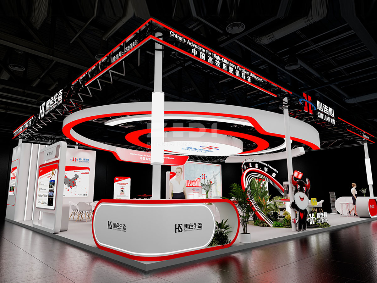 在色彩运用上,红色与白色的搭配堪称点睛之笔。红色,在中国文化中象征着热情、活力与丰收,这对于肥料行业而言,寓意着为农作物带来蓬勃生机与丰厚收获,与心连心助力农业发展的使命相得益彰;白色则代表纯净、专业,体现了心连心肥料产品的高品质与生产过程的严谨。这两种颜色相互交织,贯穿于整个展位空间。无论是接待区醒目的红白配色背景墙,还是产品展示区以白色为底、红色点缀的展示架,都营造出一种既醒目又专业的视觉效果,让心连心展位在众多展位中脱颖而出。